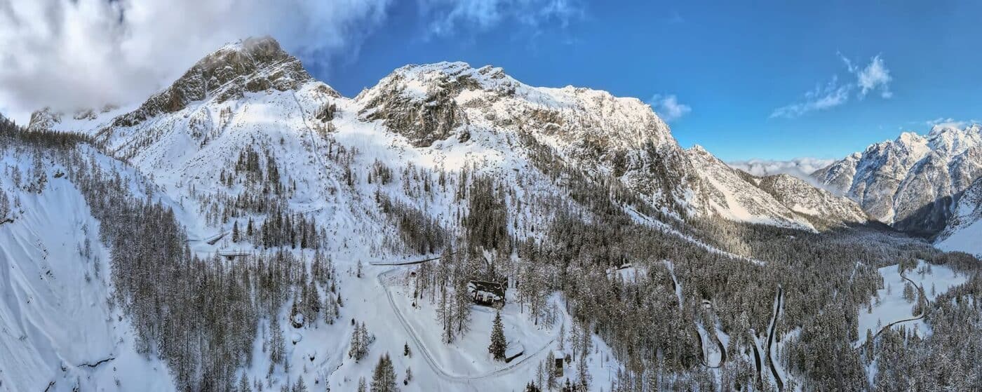 Vršič Pass, the highest mountain pass in Slovenia, transforms into a spectacular snowy paradise during winter. Nestled in the heart of the Julian Alps, it offers dramatic scenery, tranquil surroundings, and endless opportunities for winter sports. Though the pass itself is often closed to traffic due to heavy snowfall, the lower parts remain accessible, making it an ideal destination for winter hiking, snowshoeing, and ski touring.